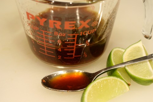 Mix the soy, lime, chile paste, honey, and fish sauce together. Give it a taste. Is it too tart? Carefully add a bit more honey. Is it not hot enough for you? Add more chile paste, carefully. Taste after each addition until it’s where you like it. It should be bright and tangy, with a bit of heat. You shouldn’t taste honey, it’s just there to balance the lime and soy. You won’t be able to taste the fish sauce at all, but it adds a “something” that’s very necessary.