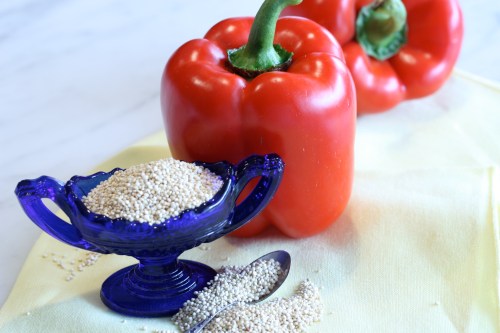 Sometimes, words can elude me. I can stammer, totally lose the next word in the middle of a sentence, and stumble along while hunting for the right words. A title for this post completely stumped me. This is a recipe for Peppers stuffed with Chicken and Quinoa with a Creole Sauce. Lengthy, and frankly, boring. Various arrangements of those words didn’t work, and finally editing it down to just Stuffed Peppers was equally apathetic. I was trying different combos, assorted word substitutions, when I found myself singing “pepper pepper bo bepper, banana fana fo fepper……”. Yikes. Anyhow..