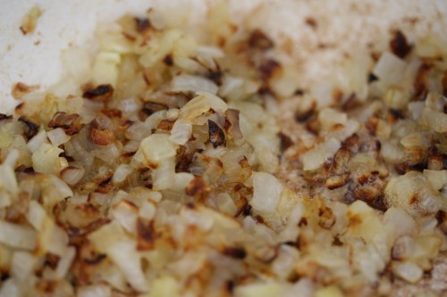 Film the bottom of a large saucepan or Dutch oven with olive oil, and place the pan over medium heat. Add the onion, and cook, stirring frequently, until it is deeply caramelized and even charred in some spots. This will take awhile, the more color, the better the final dish will be.