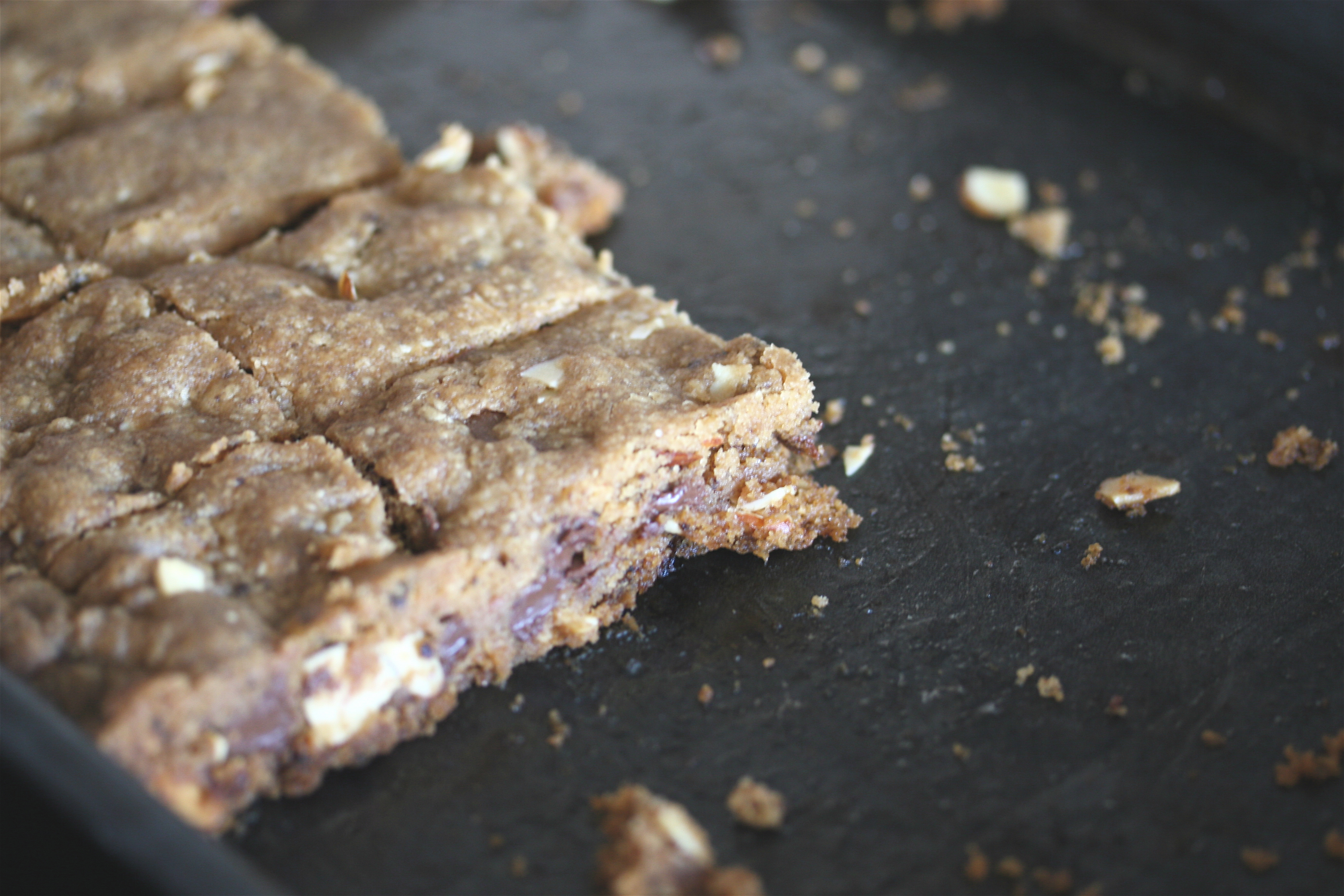 Hello, my name is Claire and I’m addicted to Coffee Crunch Bars. I’m pretty sure I’m going to have company. These could easily be renamed Crack Crunch Bars. Rich and crumbly, dark with the taste of toffee and espresso, studded with nuts, a cookie to quiet all the demon devils inside. These are not in the soft and melty category, nor do they fall in the crisp and chewy one, more like biscotti is what I think. They scream to be dunked, milk would do, but coffee…now coffee is the way to go. They’re perfect to pack in a lunch for an afternoon snack or to take on the road with you. I sprinkled some Fleur de Sel (but any coarse salt you have would do) over the top before I baked them and it’s a great addition, now they have everything, coffee and toffee, and chocolate and salt. These are seriously crunchy, seriously good, and you should make them. But I’m warning you, you might be standing before the room telling your tale of addiction before you know it. Don’t say I didn’t warn you. 🙂
