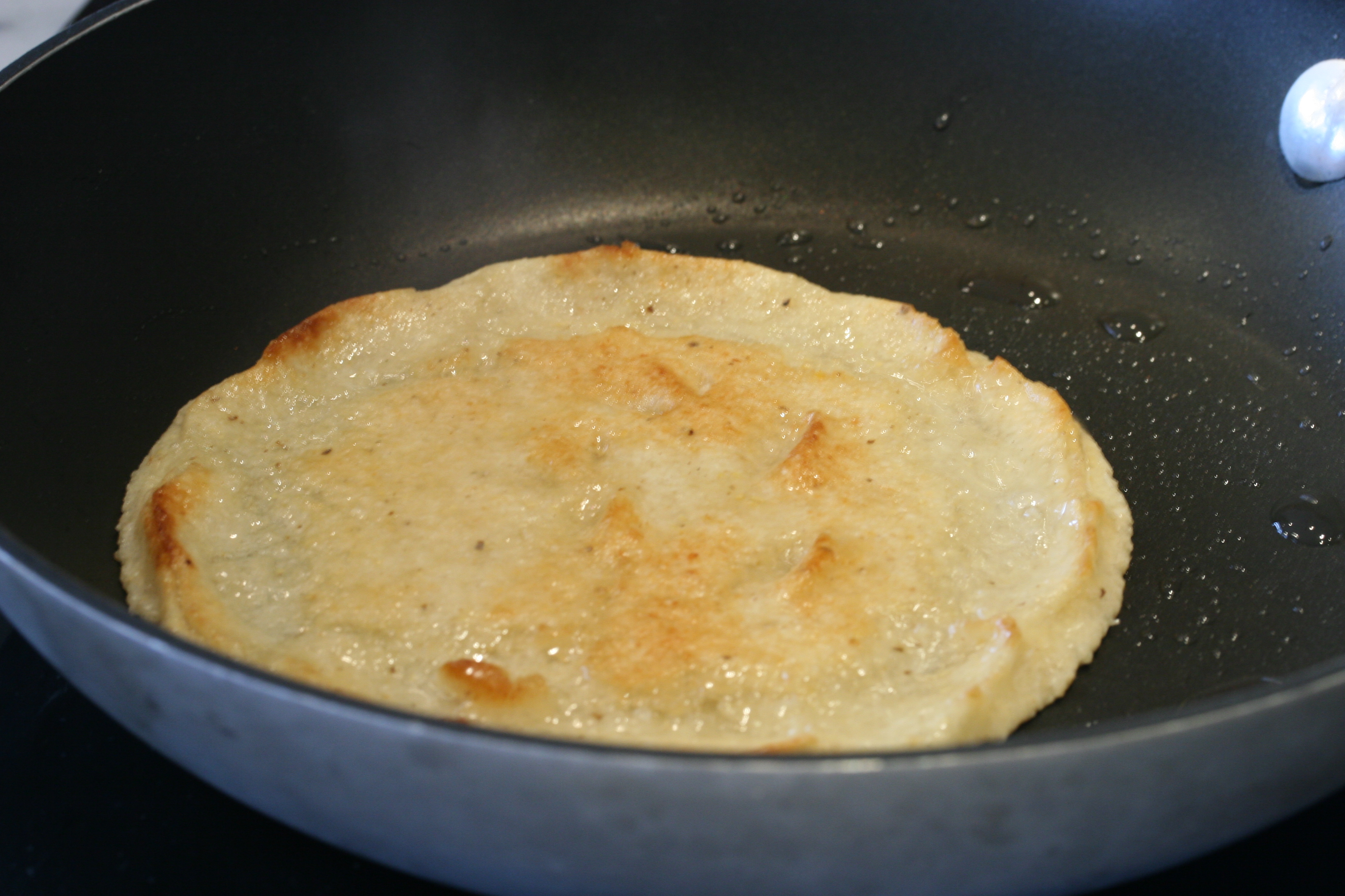 The method is basically as follows: Roll the masa, using a tortilla press or rolling-pin into a approx. 5″ round disk about 1/4″ thick. Cook on a griddle until the corn cake begins to darken slightly and look dull (it won’t be brown). While the cake is warm pinch a rim along the edge about 3/8″ high and pinch a few pieces in the middle. (Not sure why, lost in translation). When they’ve cooled to the touch, fry in 2 tsp. of lard (either vegetable or animal will work equally well) until the edges are golden. Begin to assemble, beans, then meat, a sprinkle of onions, a dollop of sour cream, salsa, and finally cheese. You use your hands to eat these, pay no attention to the fork in the photos. I tried using a fork but Juana told me it was more delicious when you pick it up. That’s the final word.